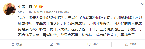 总的来说,虽然以上也都是猜想,但从目前王晶所透露的信息分析,看得出王晶对这部新片很上心,也确实意识到了光卖情怀是无法满足现在的观众,所以也会尽全力去拍好这部影片了,不然对小昭的人选也不会那么慎重,其一为了观众,也应该是为了自己吧?
