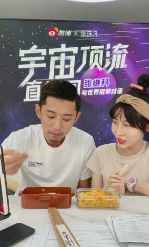 直播中,张继科和张沫凡推荐了枸杞原浆、自热火锅、染发膏、胶原蛋白粉等产品。有意思的是,吃火锅时,张继科表示要来点醋,软化血管。