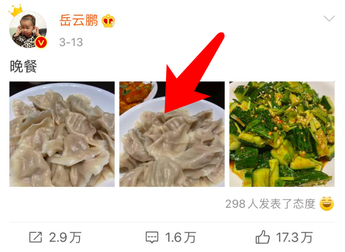 以上就是翻看岳云鹏微博晒美食之后的一些小小发现,想必大家可能也跟我一样发现了这一点,真的是感觉顿顿晒饺子的节奏,菜品样式还很像,感觉都没啥变化,但是他本人接地气的个性和说相声的才能,还是很喜欢的。