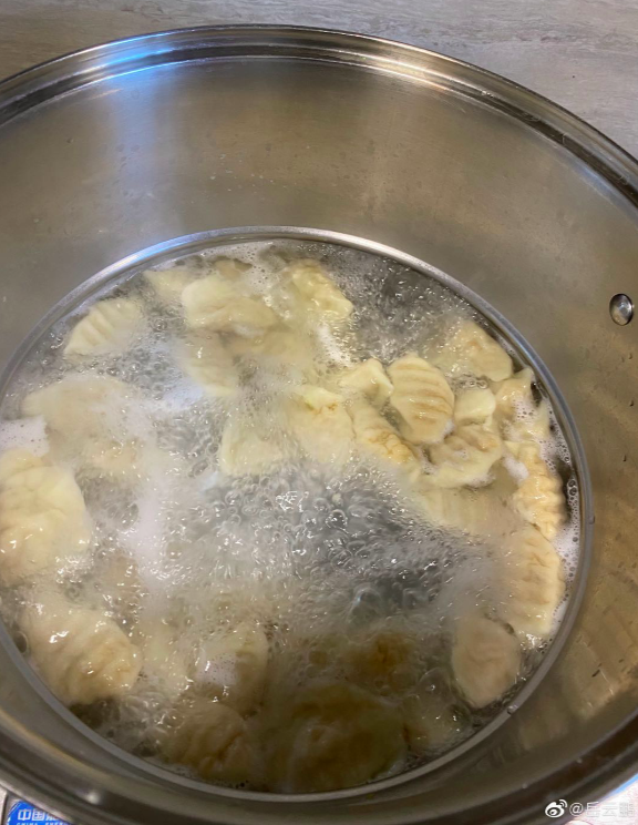 2、饺子下锅时最好一个丢下去,不要直接堆下锅,这样饺子容易粘在一个,还容易破皮。饺子下锅后顺着一个方向推动饺子,这样可以防止粘锅。