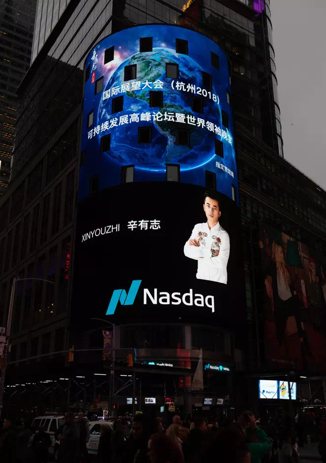 他甚至自掏腰包,在美国纳斯达克交易所的大屏上,播放自己的形象宣传片,唱歌讲述自己的创业价值观,极尽高调。他有很多看上去像是VC会给创业者做的规划,比如今年,他表示要培养出20到30个头部主播,明年,达到100个。
