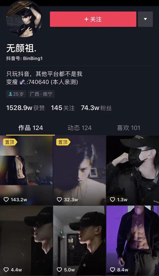 无颜祖在抖音拥有70多万粉丝