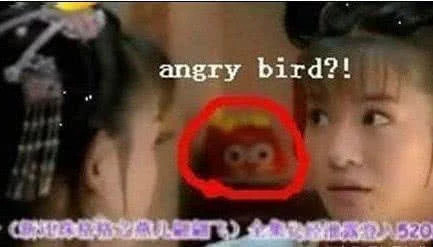 穿帮镜头六:还有一幕是小燕子跟紫薇两个人在说话,突然镜头当中出现了一个卡通形象,谁能告诉我这是什么?这不是喷怒的小鸟布偶吗?难道是穿球鞋的侍卫穿越的时候顺带拿过去的?
