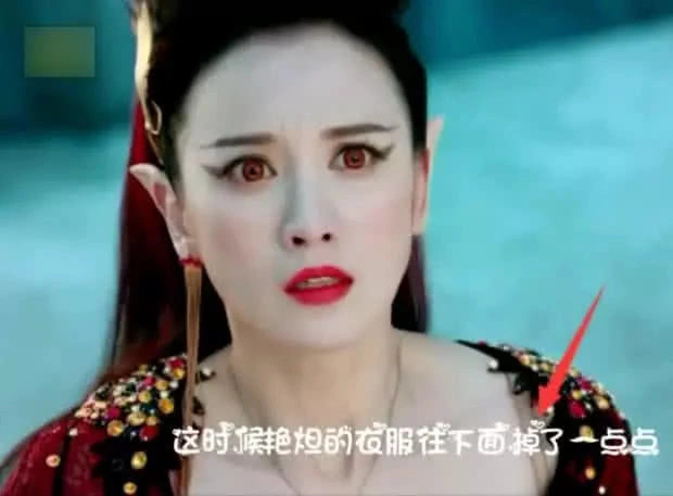 穿帮镜头四:在《幻城》,麦迪娜饰演的是人鱼公主,张萌饰演的是艳兀火族公主),演员的亲力亲为收获了好的口碑!但是在火族公主与对手对抗的时候,注意看她的衣服,不小心滑落,透明肩带亮了!