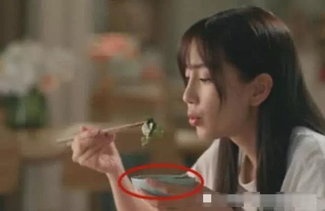 穿帮镜头一:杨颖大晚上一个人在家里吃火锅,注意看她碗里有很少的东西,而且用筷子夹起来的只是菜叶子。这时候手里的碗倾斜了一下,我们看到碗里的东西突然变满了,越吃越多真的是有点搞不懂啊!