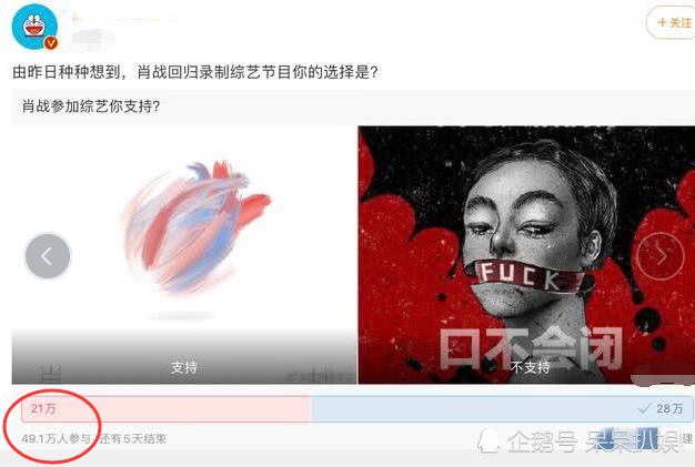 一位博主发起是否支持肖战回归的投票,最终的投票结果却令人唏嘘不已,也确实没有让人想到在49万人的总投票人数之中有高达28万人表示不支持其回归,这个人数已经超过了半数之多,很显然肖战事件让他本人的人设在一夜之间就崩塌了。