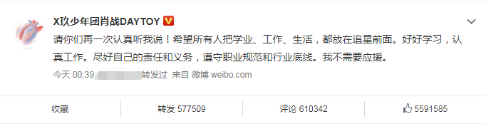 不过肖战已经对之前的事情说过道歉了,他也在微博劝诫自己的粉丝要理智追星,学习工作生活应该放在追星前面,自己不需要应援。