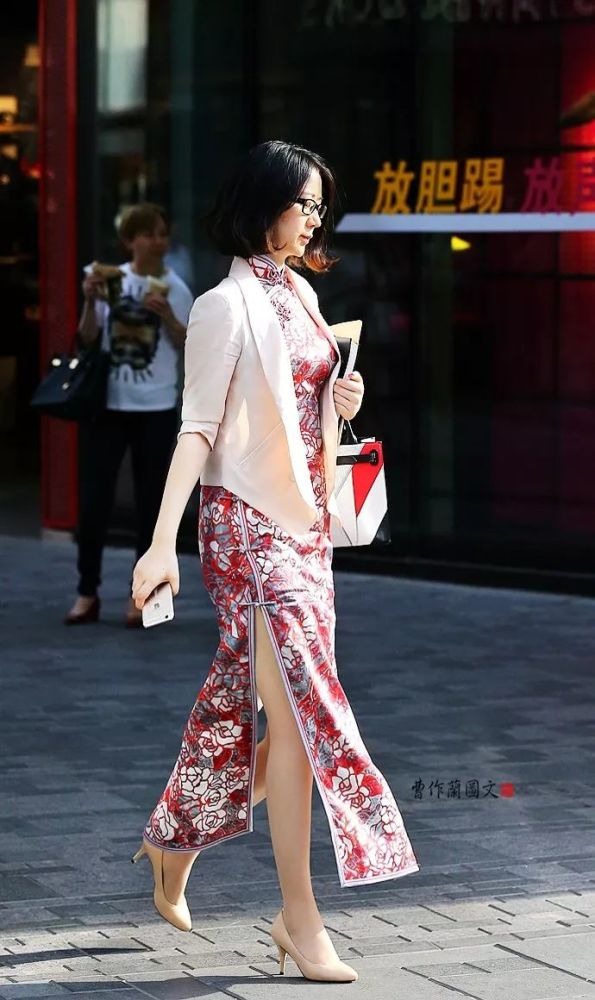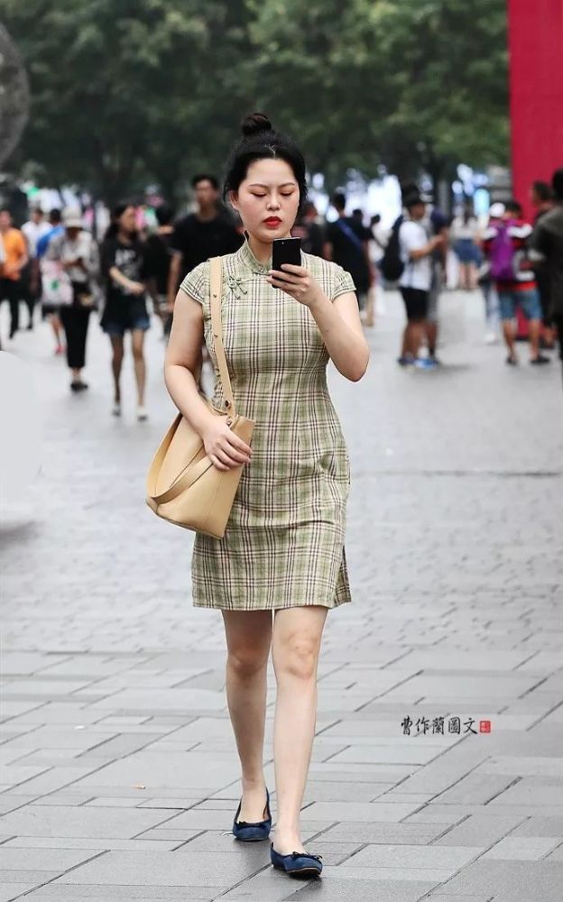 1.春晚节目的旗袍舞蹈真好看,那种婀娜多姿的倩影真是有绕梁三日的魅力。赶紧整理了一下在北京时尚街区拍到的日常旗袍美女,真的也不逊色。可贵的是,喜欢旗袍的美女很年轻,而且人数很不少,很让人为旗袍的后继有人而欣慰。旗袍的面料从高端织锦到普通棉布,多种多样,呈现出多元化的样貌。美女身穿的旗袍,合身合体还很个性化,一看就是量身定做,这说明美女真是发自内心的喜欢旗袍,真是实实在在让旗袍走进了自己的生活。