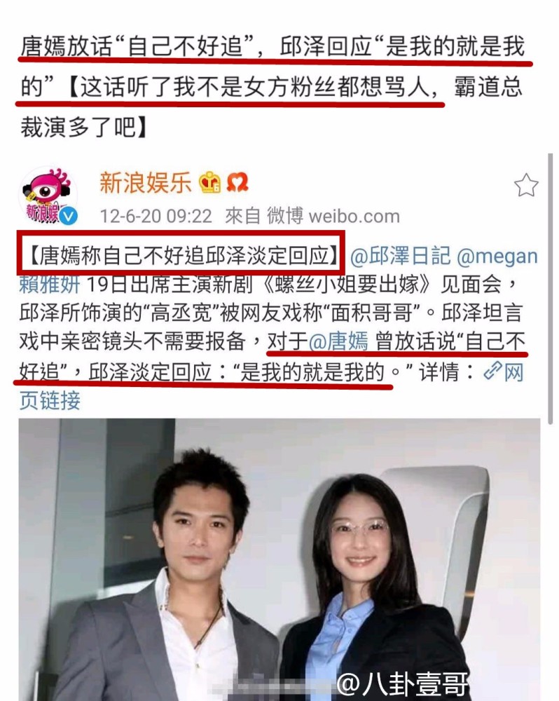 特别是当年和唐嫣的绯闻也是采用这种套路,当年在男方车里发现唐嫣照片,记者问起来邱泽也说正在追求,唐嫣回答:我不是这么好追的,隔天通稿发的是邱泽深情追求唐嫣高冷什么的…