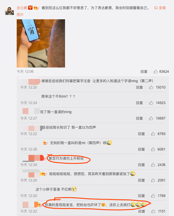 避免了双方尴尬,也给了岳云鹏一个台阶下。岳云鹏随后也在评论区,表达了自己的歉意,把“甯”字设为手机壁纸。