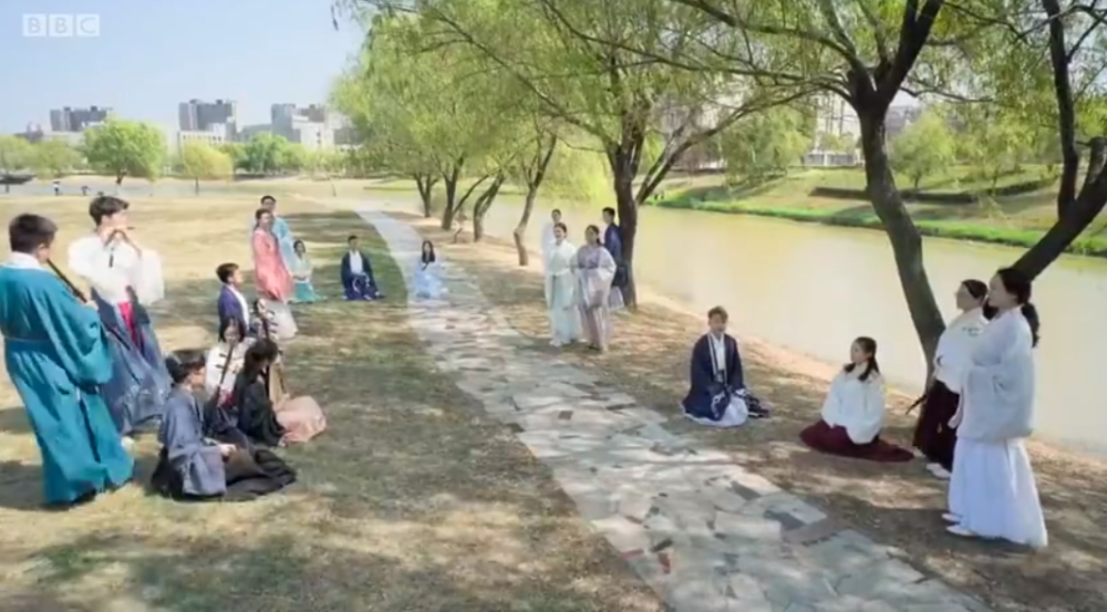 事实上,《杜甫:中国最伟大的诗人》的团队未必不清楚自己所拍摄的地方早已不是杜甫的唐代,他们想要追寻的不是物质的遗产,而是追寻中国人的精神性。那些跳广场舞的大爷大妈,那些穿着汉服演唱诗歌的青年学生,那些在杜甫草堂吟诵诗歌的天真孩童,他们的脚下就不是真实中国吗?