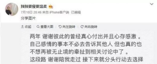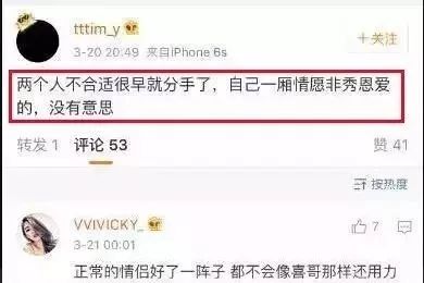 韦雪的事情还没消停下来,就又有自称秦奋好友的网友很不客气的爆料喜哥早就出局了,却一厢情愿强行秀恩爱。