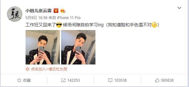 近日,相声演员张云雷在自己的社交媒体上发布了两张自拍照,并配文:“工作狂又回来了”。随着身体的康复,张云雷已经正式进入了工作状态。照片里的张云雷气色很好,心情也不错。因为上了粉底的缘故,为了节目效果,张云雷的脸部与手呈现有趣的色差,也可以看出他本身是肤色白皙的人。看得出来,正在拍摄的间隙的张云雷在化妆间自拍努力营业,拍出照片来分享给自己的粉丝。