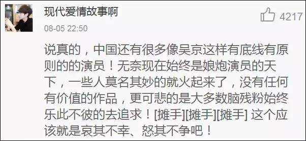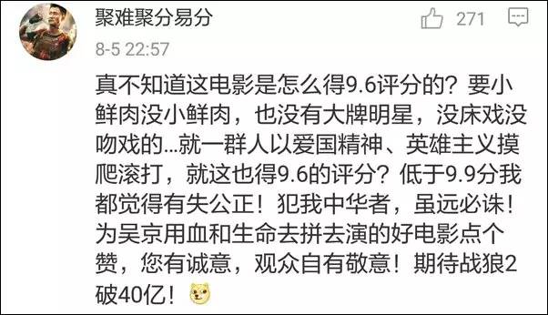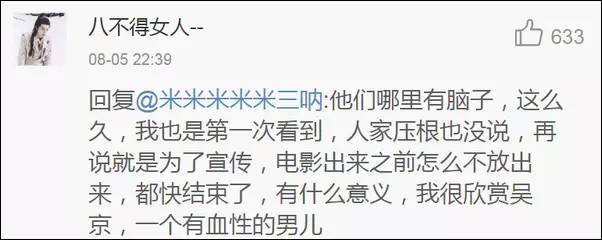 还有人说吴京活了四十岁没火,终于在“高人”指点下靠爱国火了,网友怒喷:持这种腔调的人脑子是被锤子砸了么?为炒作谁会这样卖力?