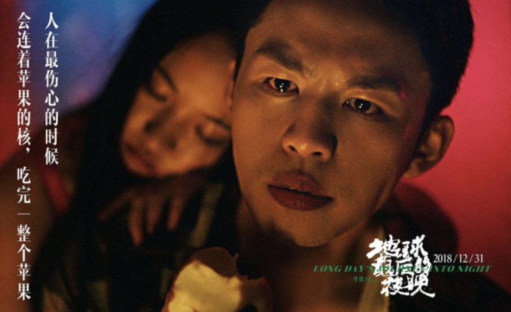 《地球最后的夜晚》中,反传统的长镜头聚焦于他悲伤的面孔,他边啃着苹果边任由泪水流淌。那一刻,在扭曲的时空中,屏幕前那面阻隔在观众与电影之间的玻璃墙被打破,过去与现在,现实与梦境的界限变得模糊。