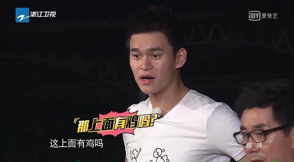 《我们十七岁》里小心翼翼地问:“这上面有鸡吗?我怕鸡”;《来吧,冠军》里赢了比拼后水池里倒着抖大腿;《真正男子汉》里教官说:“我们整个新兵生涯,衣服就从来没干过。”孙杨回:“我的泳裤也没有干过。”
