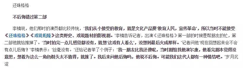 比起后两部剧,李楠其实很少提及《还珠》,他只是受朋友所托才参演了第一部,第二部的时候就干脆辞演了,对此他也表示过并不后悔。