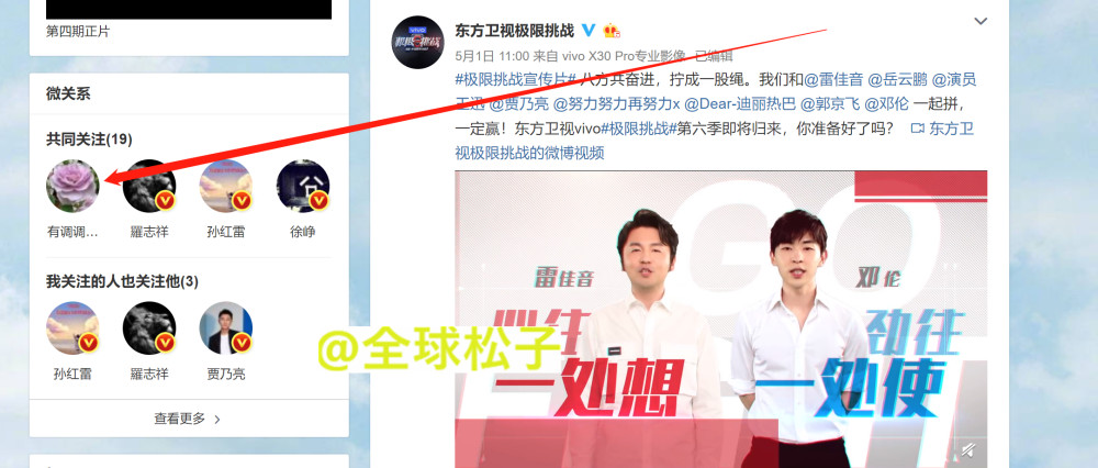 《极限挑战》官方微博的关注名单,名单内确实有该工作人员。