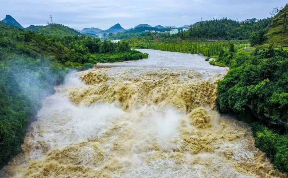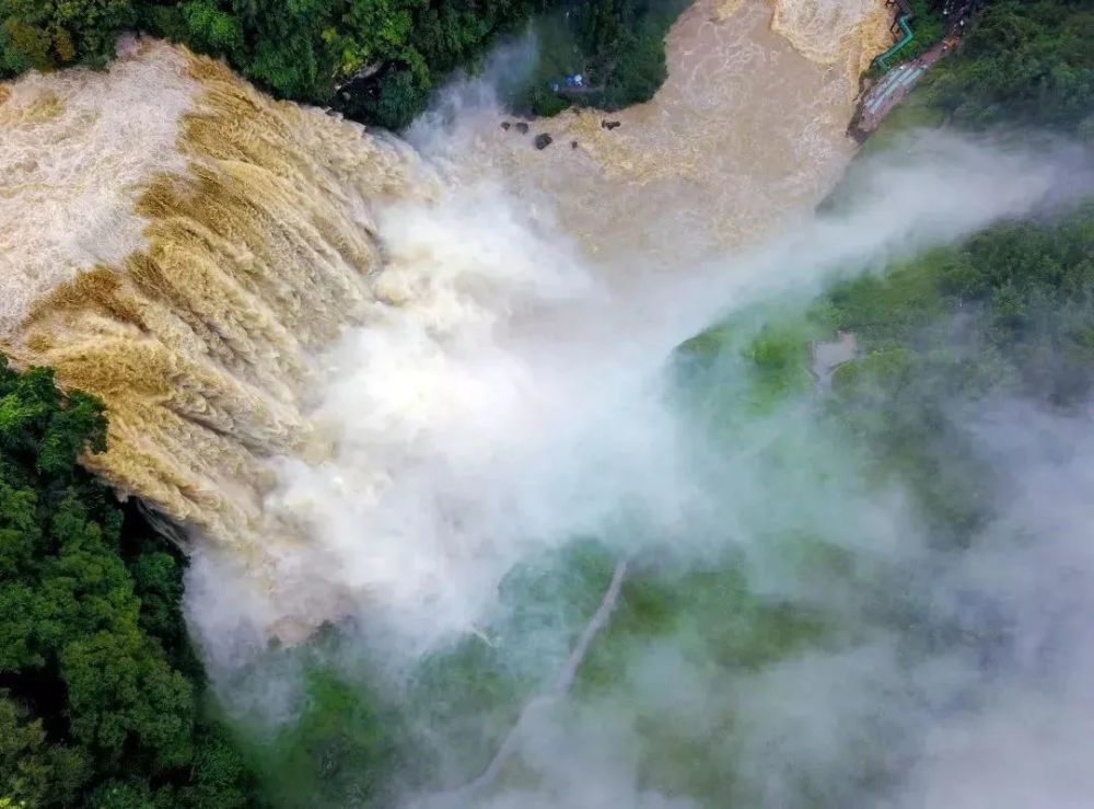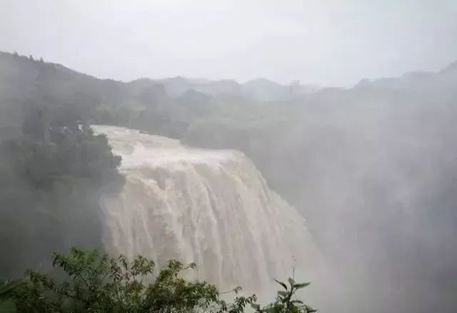 汛期中的黄果树如同怒吼的雄狮,十里之外闻其声,气势磅礴,更显雄伟身姿。