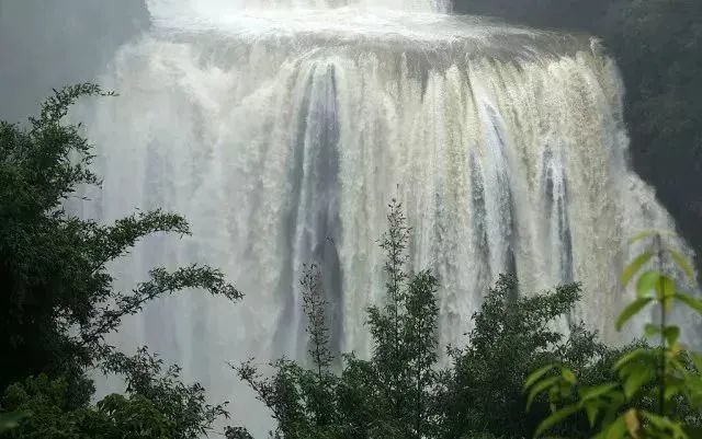 经过一场大雨,黄果树瀑布声势有如万马奔腾,有如冲锋陷阵,有如十万游行队伍的高呼口号。