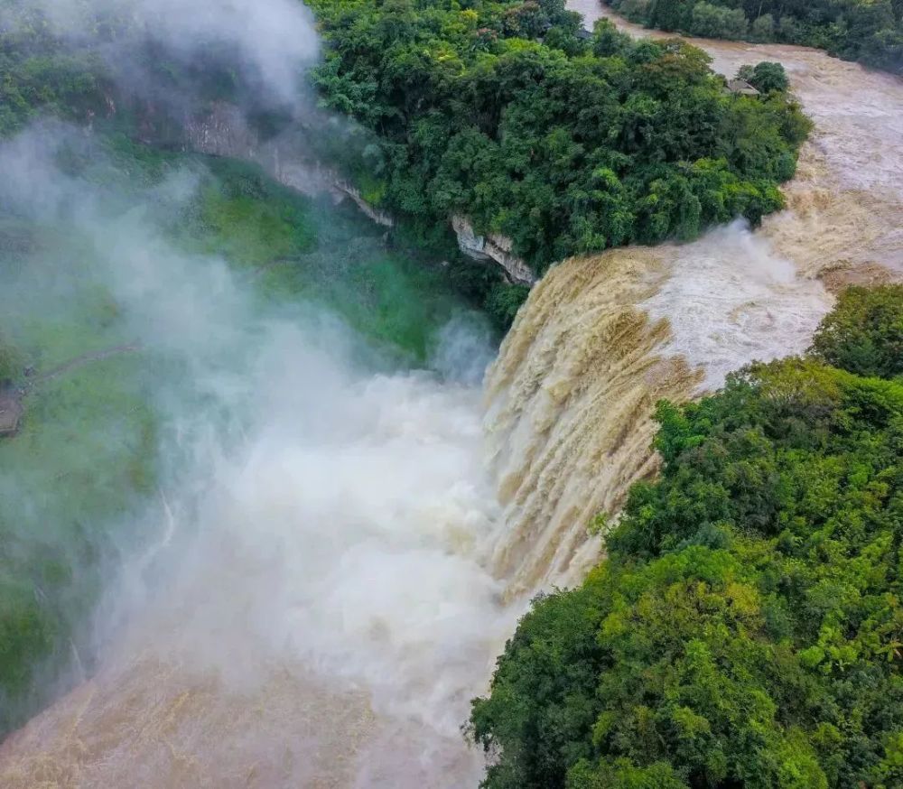 虽然黄果树水变黄了、水流更急了、更大了。似乎看起来没有之前那么秀美了,但是却又增添了几分霸气和壮美。