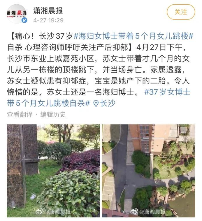 不久前,一位妈妈因为深受产后抑郁的困扰,带着女儿跳楼身亡。