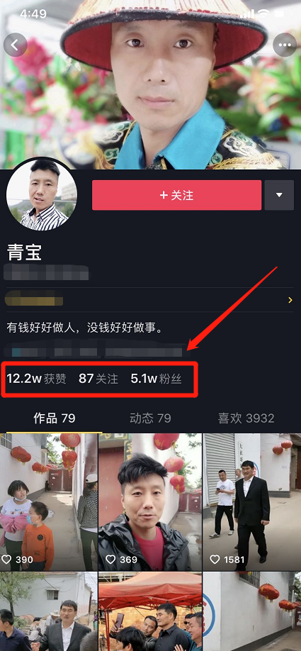 大衣哥在之前接受采访时说过那些拍视频的人都不是本村的。比如说这位“青宝”,就租住在朱楼村,时常直播村里的情况,时常发一些朱志文相关的短视频。