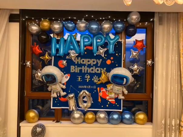 王建永晒出了王子豪生日趴的现场图,以蓝色系为主,王子豪生日快乐,除了一些漂亮的气球之外,可以发现一个细节,那就是两个宇航员一样的两个玩偶,看来小王子的生日愿望是以后想当一名宇航员,很有想法的小男孩。