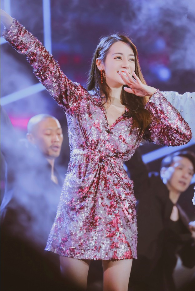 女生一般都对亮闪闪的东西没有什么抵抗力,就好比一条亮晶晶的裙子女生都会很喜欢,而热巴身上穿的这条裙子还是粉色的,上面有很多银色的亮片装饰,衬得她整体的造型十分抢眼,这条裙子的设计感也是比较强的,在腰上是褶皱的设计,所以当热巴穿上这裙子后就将她的腰身都凸显了出来!