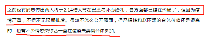 除此之外,冯绍峰赵丽颖两人虽然已经结婚了,但是却并没有办过婚礼,因此也有很多网友期待冯绍峰赵丽颖的婚礼,赵丽颖作为85后人气最高的小花之一。年初在网络上就有很多爆料称,在赵丽颖生子之后,冯绍峰便开始精心地准备,想要于今年2月14日情人节在巴厘岛给赵丽颖一个终身印象深刻的婚礼,种种传言让网友们更加期待,相信作为顶级花旦,赵丽颖的婚礼一定又会是众人关注的焦点。