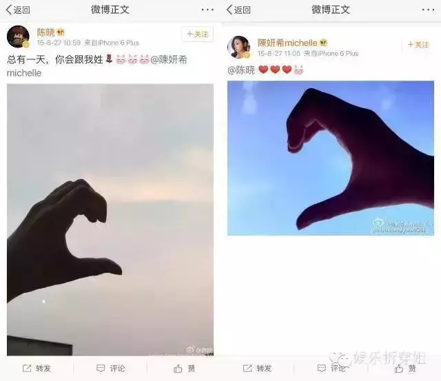 2015年8月,王宝强离婚声明的整整一年前,陈晓陈妍希被曝出恋情。耿直boy陈晓毫不犹豫地承认了,还比出一个半圆的爱心,霸气喊话: