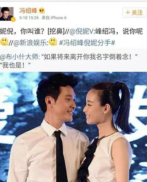 讲真,这个桥段总是让人想起冯绍峰和倪妮。两人热恋期的时候,倪妮曾经对冯绍峰说:如果我们分手了,我的名字就倒着念。