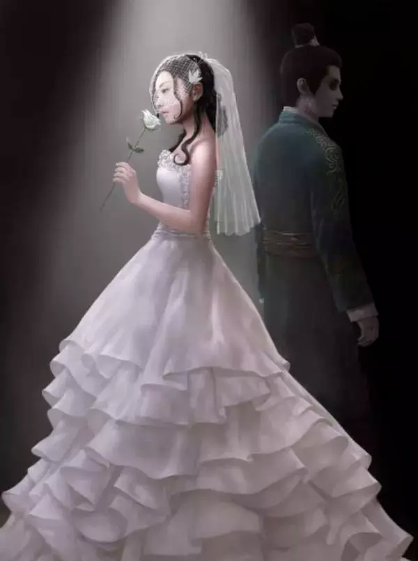 还画过赵丽颖的婚纱照,与陈晓饰演的高湛背对背站着。