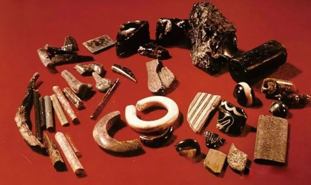 我国陶瓷绞胎工艺出现于唐代,即公元7~9世纪;西亚绞胎器出现于公元前15~14世纪。而此时的西亚、 北非埃及玻璃中已经采用融合技术制作玻璃料仿制宝石, 或采用融合技术制作玻璃器。公元前后3个世纪即罗马帝国时期,这种融合技术(镶嵌)最为流行: