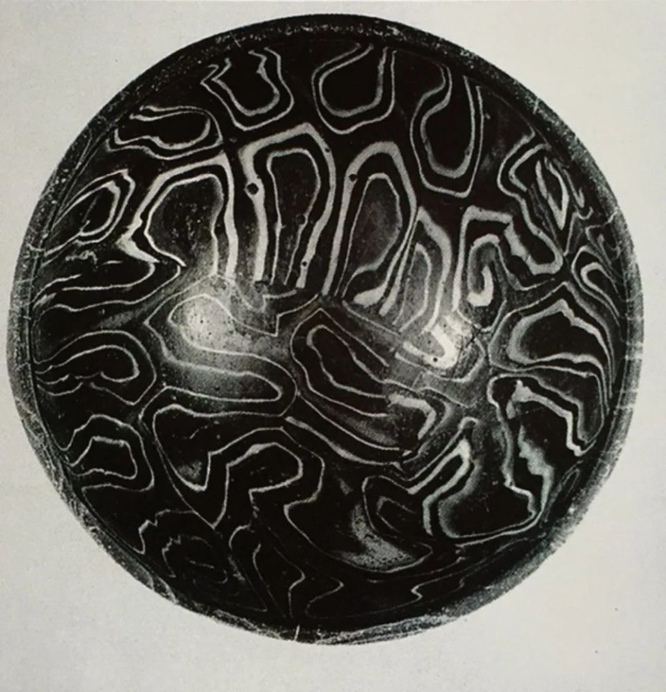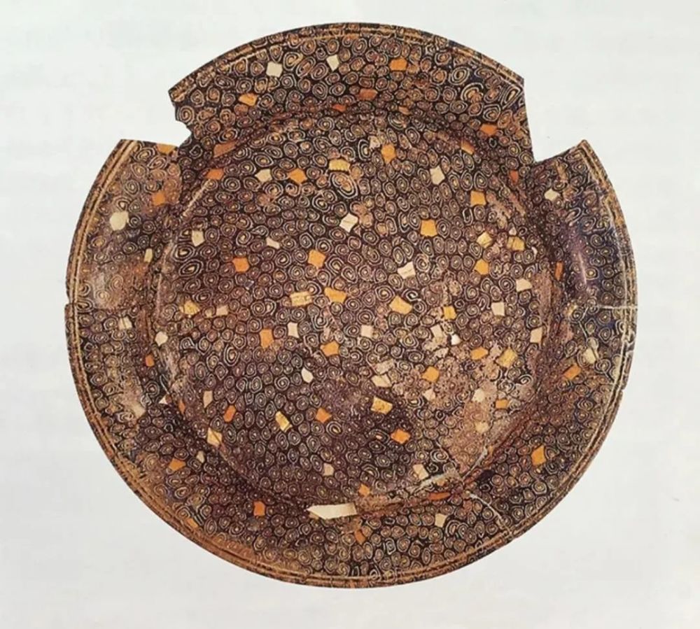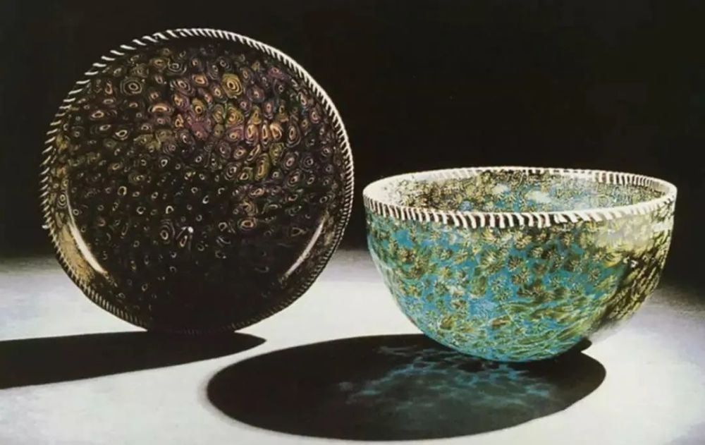 如果认为,公元前1500年的美索不达米亚制作的内核玻璃器上的图案与绞胎纹理还不是太相像的话,那我们来看看公元前1世纪亚历山大时期,采用融合技术把预制料和热熔玻璃液体一起制作的融合(镶嵌)效果玻璃器。
