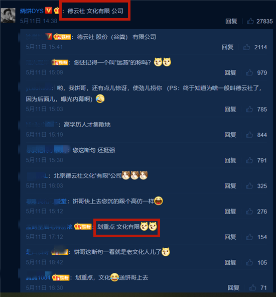 就是拿“甯”做了手机桌面,德云社的段子里没少拿自己人包括整个德云社,师父郭德纲以及于谦等砸挂。比如他们有个梗就是:德云社“文化有限”公司。“文化有限”也成了德云社段子里重复很多次的一个梗。这次烧饼也不例外:回复岳云鹏致歉张钧甯,又拿德云社砸挂:德云社 文化有限 公司。