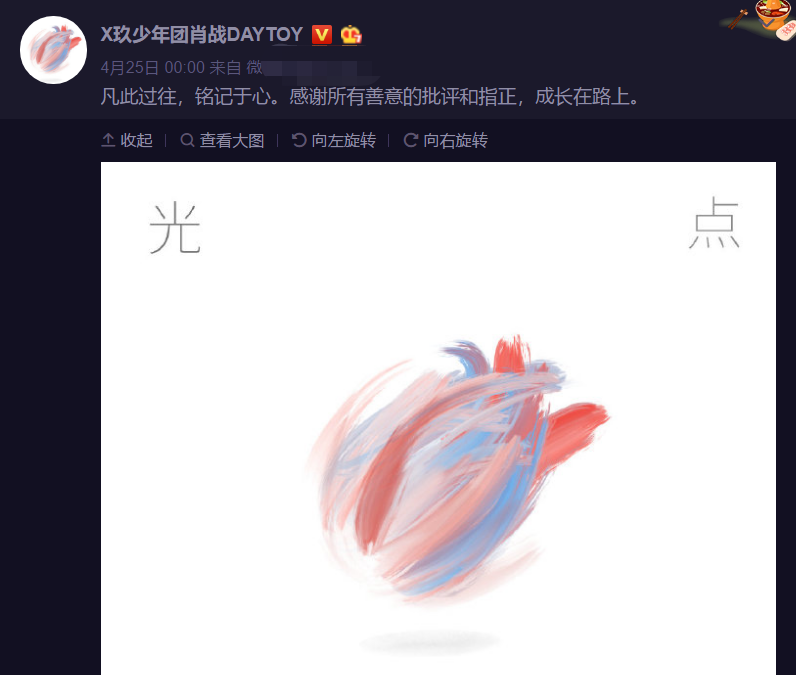 之后肖战现身接受媒体采访,谈到了自己在沉寂的这段时间里的生活,以及对引导粉丝的反思。他表示看到粉丝们以自己的名义做公益,十分高兴和欣慰,但不认可网友们所说的,明星应该管理粉丝,因为双方是平等的,自己没有“管理”的权利。对此肖战表示只能唱好歌、拍好戏,认真对待作品,也希望粉丝们不要伤害他人,更不要伤害自己。