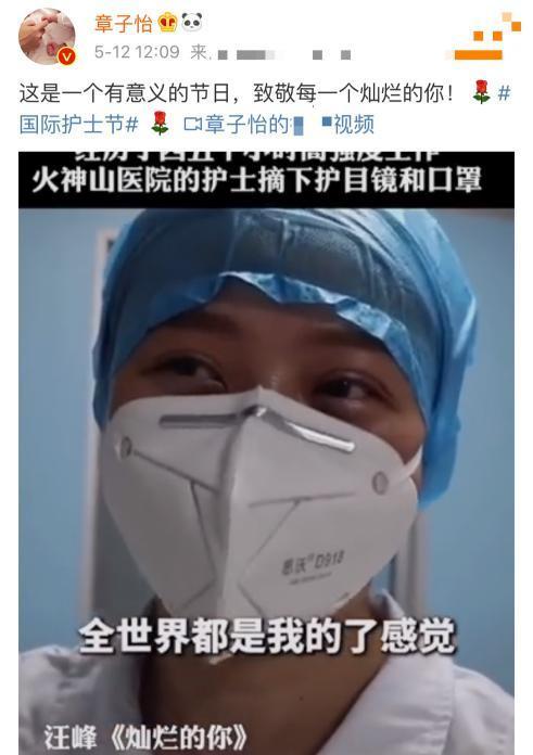 而一向人美心善的章子怡,也在午间用老公汪峰的歌《灿烂的你》,将疫情期间所有医护人员们的奉献和坚持剪辑下来,感人至深。