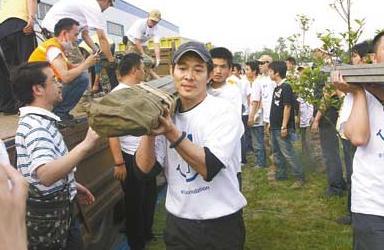 由于任务的艰巨和志愿者的匮乏,李连杰大哥也亲自挽袖上阵,帮助搬运救灾物资。据当时的媒体报道,李连杰在搬运救灾物资的时候还说:"我现在不是李连杰,我只是志愿者。"日夜的操劳和体力的透支,也让他累到满嘴起泡,引得无数网友的心疼。