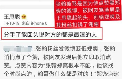 反正分手分得极其不体面,张翰被发现点赞了diss郑爽的微博,喜提王思聪吐槽