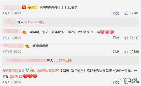 如果说陈晓赵丽颖纯粹是被于正“算计”,那张翰郑爽这边就有点不知谁的锅了。元旦零点的时候爽子宣布回归微博,正巧塘主也发了新年快乐,中间只隔了1分钟。