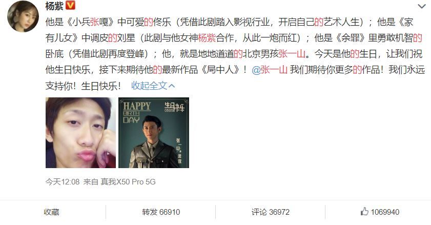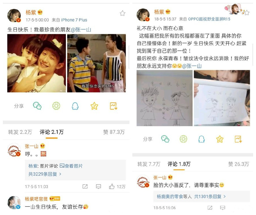 杨紫每年准时给张一山送上生日祝福,从未迟到。