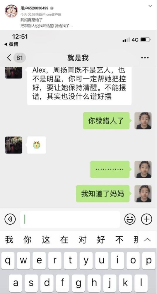之前周扬青还曝出妈妈发给朋友Alex的短讯,表示希望女儿要保持清醒不能摆谱。周妈妈的态度很明显,不要因为一时的情绪或是高关注度,而迷失了自我。