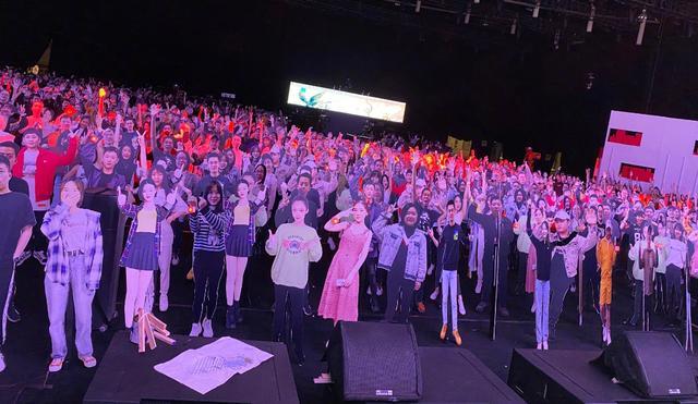 台上大张伟薛之谦主持的时候,下面看上去还挺热闹,有一种人山人海的感觉,不过这些“人”的姿势并不会变化,举着手的就一直举着手,比耶就一直比耶,有种莫名的诡异。