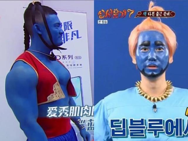 除此之外,《极限挑战》把《新西游记》中圭贤的蓝精灵的装扮都弄过来了。