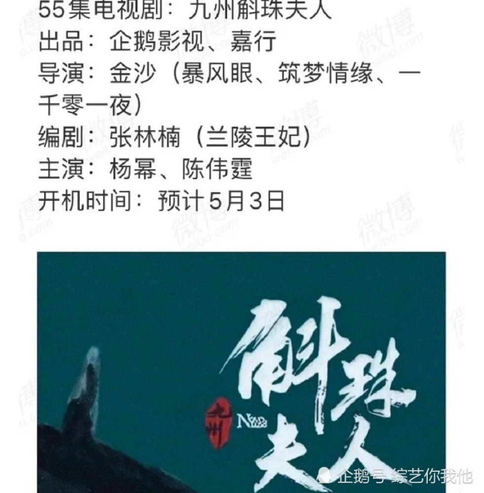 根据同名小说改编的电视剧《斛珠夫人》最近开机了,这部电视剧其实在2018年的时候就已经立项,而且确认主演是杨幂,但是却知道这几天才开拍,一同曝光的还有就是男主陈伟霆,杨幂和陈伟霆也算是《古剑奇谭》之后的第二次合作了,不知道《斛珠夫人》这部电视剧能否取得一个好成绩呢?