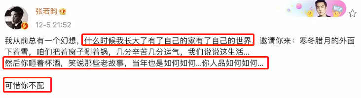 昨天晚上,张若昀突然发了一条意味深长的微博。