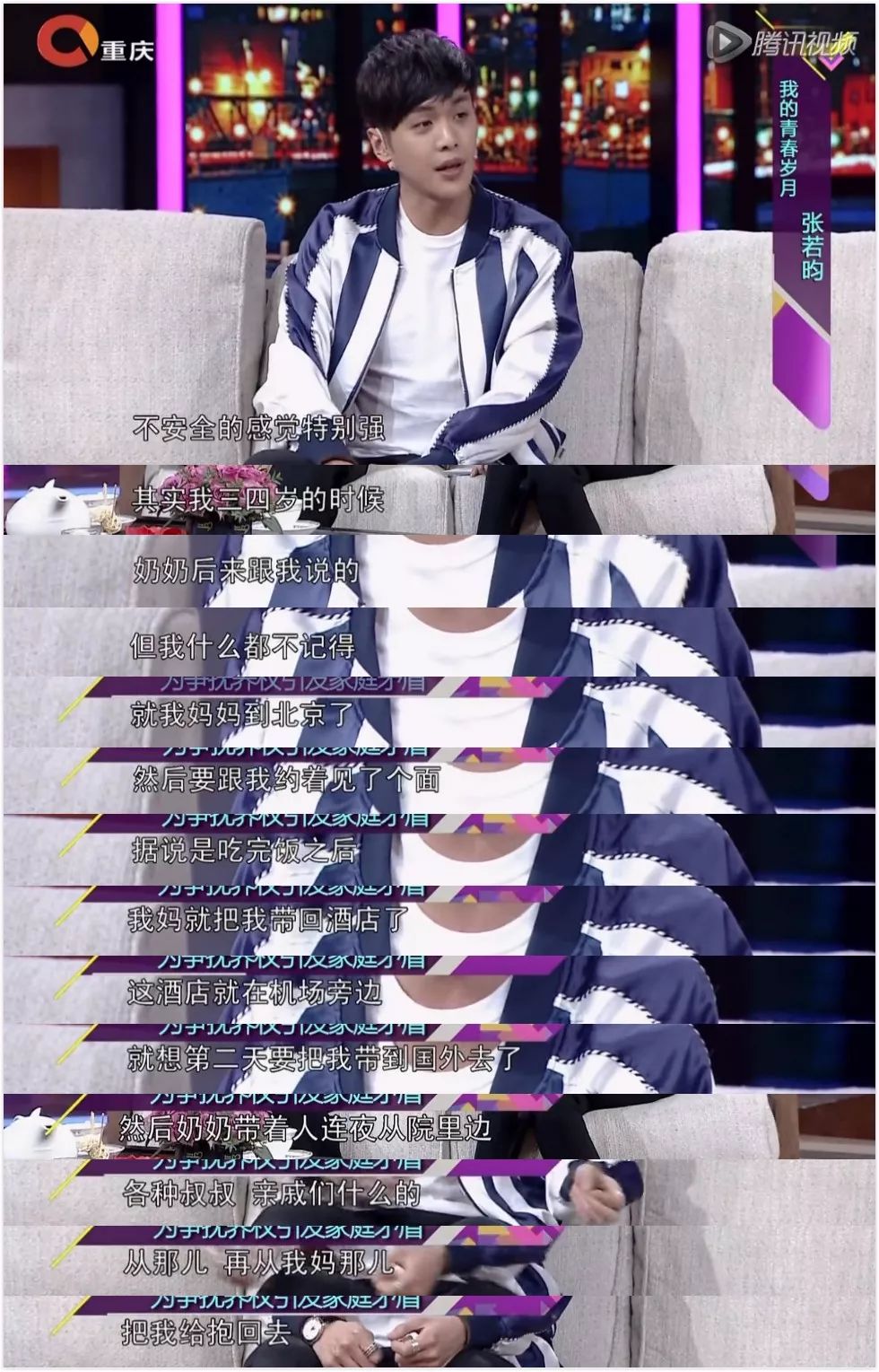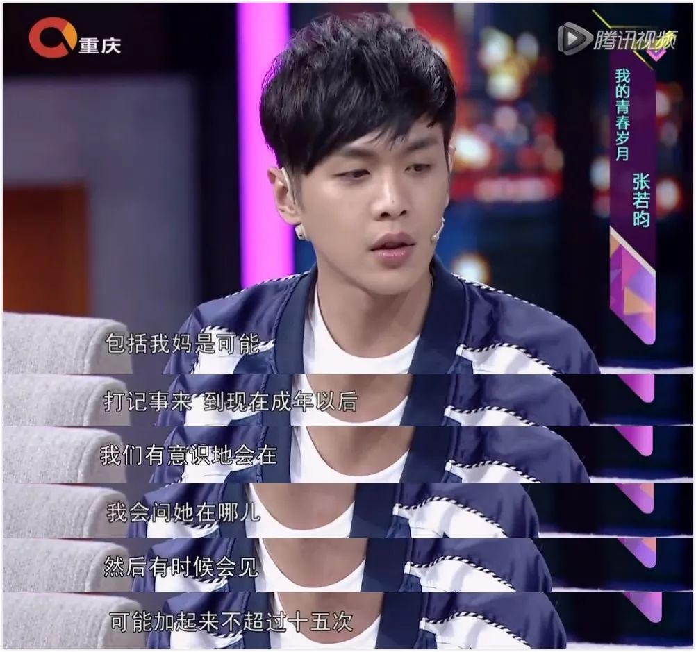 张若昀跟妈妈见的就更少了,从有记忆到成年之后,见面次数不总和也不到15次。