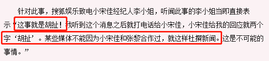 但小宋佳坚决的否认说:胡扯,没有的事。