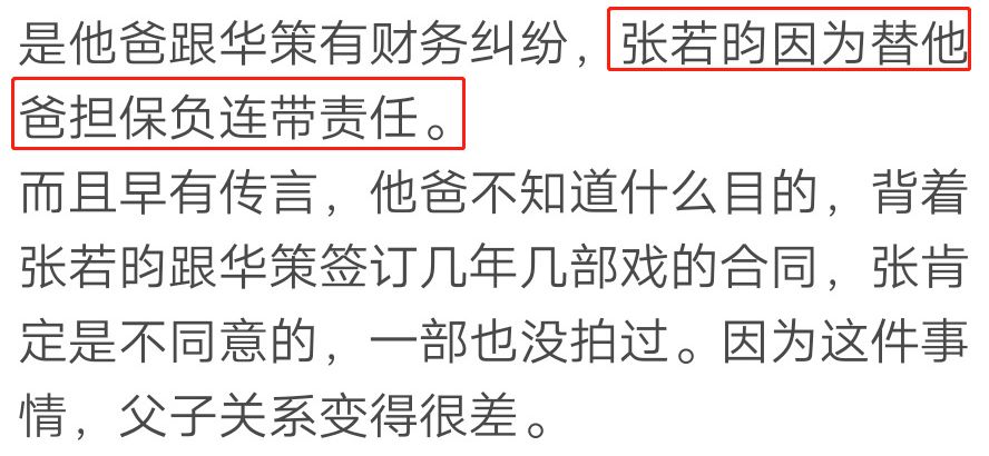 有爆料说,是因为他爸跟华策公司有财务纠纷,而张若昀只是替他担保被连累的。